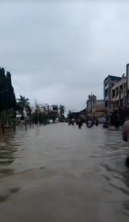 માંડવીમાં વહેલી સવારથી જ અનરાધાર વરસાદ વરસી રહેલ છે જેના કારણે પરિસ્થિતિ વિકટ બનેલી છે.અને સવારે છ વાગ્યાથી શરુ થયેલો વરસાદ બપોરે બે વાગ્યા સુધી અવિરત ચાલી રહેલ છે.શહેરમાં કમર ડુબ પાણી ભરાયા છે.શહેરના મુખ્ય સ્વામીનારાયણ મંદીર રોડ પર કમર ડુબ પાણી ભરાયા છે.તો નીચાણ વાળા વિસ્તારોમાં કફોડી હાલત થઇ છે.