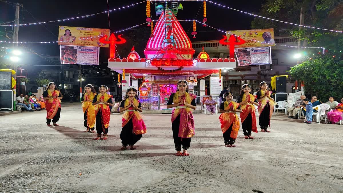બોડેલી ખોડિયાર માતાના મંદિરેમાં બાલિકાઓ યોજાતા નવરાત્રી મહોત્સવમાં બોડેલીની શિવરંજની સ્કૂલની બાળકીઓએ ભરતનાટ્યમ નૃત્યએ આકર્ષણ જમાવ્યું હતું. શહેરોમાં નવરાત્રીના ગરબા યોજાઈ રહ્યા છે, તો ગ્રામીણ વિસ્તારમાં પણ નવરાત્રીના ગરબા યોજાઈ રહ્યા છે.બોડેલી ખોડિયાર માતાના મંદિરે નવરાત્રીના આયોજકોએ શિવરંજની સ્કૂલની બાલિકાઓને ભરતનાટ્યમના નૃત્યની ટીમને આમંત્રણ આપવામાં આવતા, શાળાની બાળકીઓ એ સુંદર ભરત નાટ્યમનું નૃત્ય રજુ કર્યું હતું.છોટાઉદેપુર જિલ્લાના બોડેલી ખાતે ખોડિયાર માતાના મંદિરે યોજાતા નવરાત્રી મહોત્સવમાં શિવરંજની સ્કૂલ કોરિયોગ્રાફર કિંજલ પુરોહિતે જે બાળકીઓ શાળાની બાળકીઓને ભરતનાટ્યમ નૃત્યની પ્રેક્ટિસ કરાવાઈ છે. તે બાળકીઓ એ ગરબા મહોત્સવ દરમિયાન ભરતનાટ્યમ નૃત્યની સુંદર પ્રસ્તુતિ કરી હતી. જે નૃત્યને જોવા મોટી સંખ્યામાં ઉપસ્થિત લોકો પણ દંગ રહી ગયા હતા. અને નવરાત્રીના પાવન પર્વ નિમિતે બાલિકોએ ભરતનાટ્યમ દ્વારા માતાજીને રીઝવવાનો પ્રયાસ કર્યો હતો.ભરતનાટ્યમ વિશે શિવરંજની સ્કૂલ કોરિયોગ્રાફર કિંજલ પુરોહિતે ETV ભારત સાથે વાત કરતાં જણાવ્યું હતું કે, “આમારી શાળામાં આભ્યાસ કરતી બાળકીઓને ભરતનાટ્યમના નૃત્યની તાલીમ આપીએ છીએ, જેમાં 10 જેટલી વિદ્યાર્થીનીઓ સંપૂર્ણપણે ભરતનાટ્યમનું નૃત્યમાં સારી રીતે અભિનય કરી રહી છે, અમને ખોડિયાર માતાના નવરાત્રીના આયોજકો દ્વારા ગરબાના સમયે ભારત નાટ્યમનું નૃત્ય કરવા આમંત્રિત કરવામાં આવ્યા અને અમારી નૃત્યની ટીમ દ્વારા સરસ રીતે ભરતનાટ્યમનું નૃત્ય કરીને માતાજીને રીઝવવાનો પ્રયાસ કરવામાં આવ્યો છે. ગરબાના આયોજકોનો પણ ખુબ સારો આવકાર મળ્યો છે, અને અમારી ટીમ દ્વારા નૃત્ય રજૂ કરવા આવ્યું. જે લોકોને પણ ખુબ ગમ્યું અને અમારી ટીમને ખુબ સારો આવકાર મળ્યો છે.”