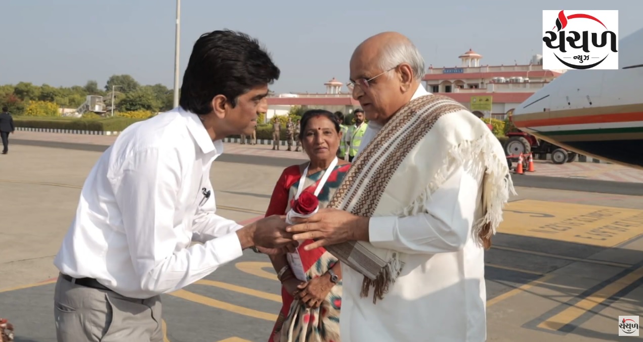 કચ્છ પધારેલા મુખ્યમંત્રીશ્રી ભૂપેન્દ્ર પટેલનું ભુજ એરપોર્ટ ખાતે ભાવભર્યું સ્વાગત